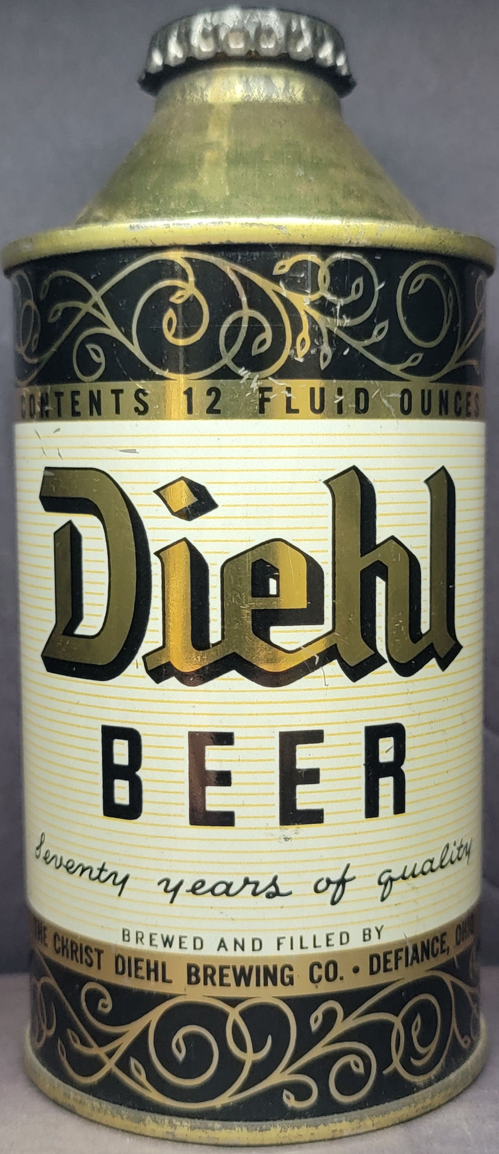 Diehl Beer 70 years IRTP cone top beer can Defiance OH
