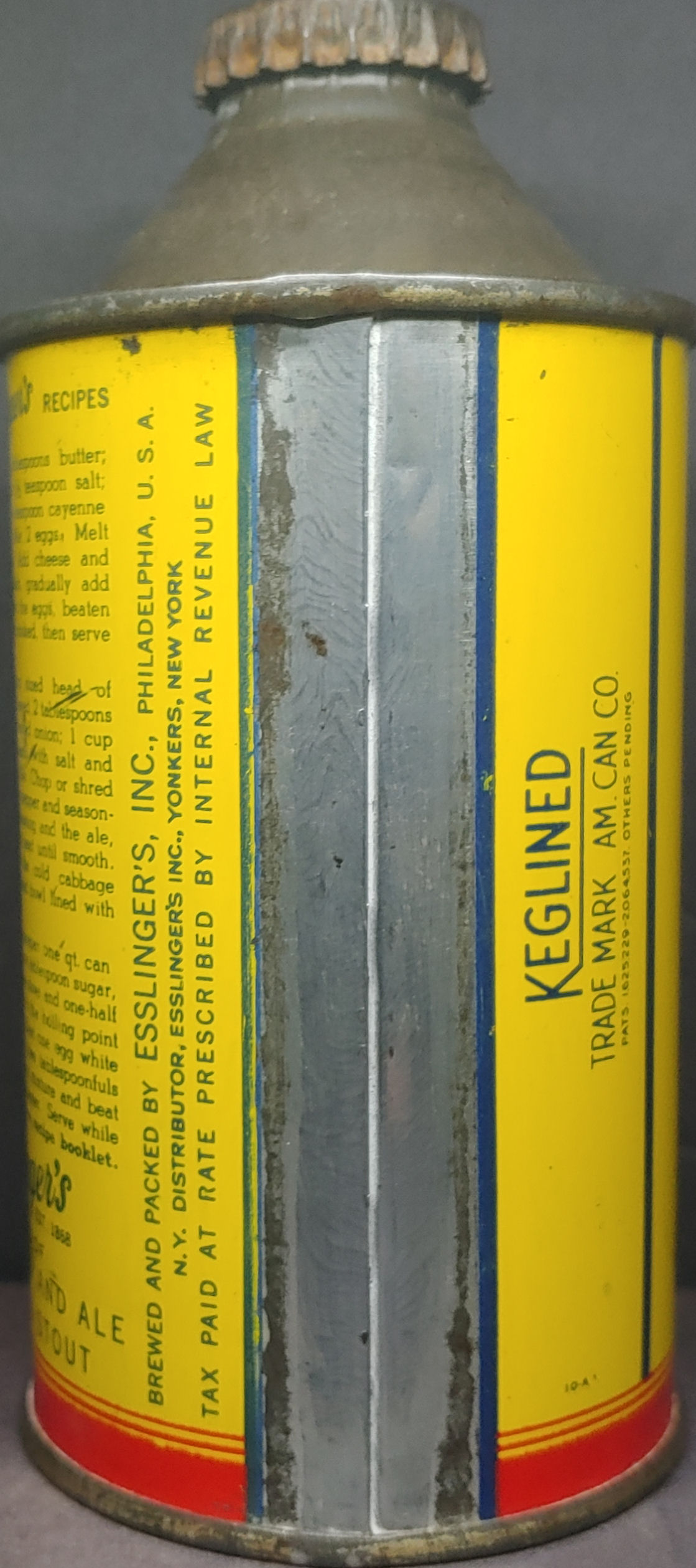 Esslinger’s Little Man Ale cone top beer can Philadelphia PA