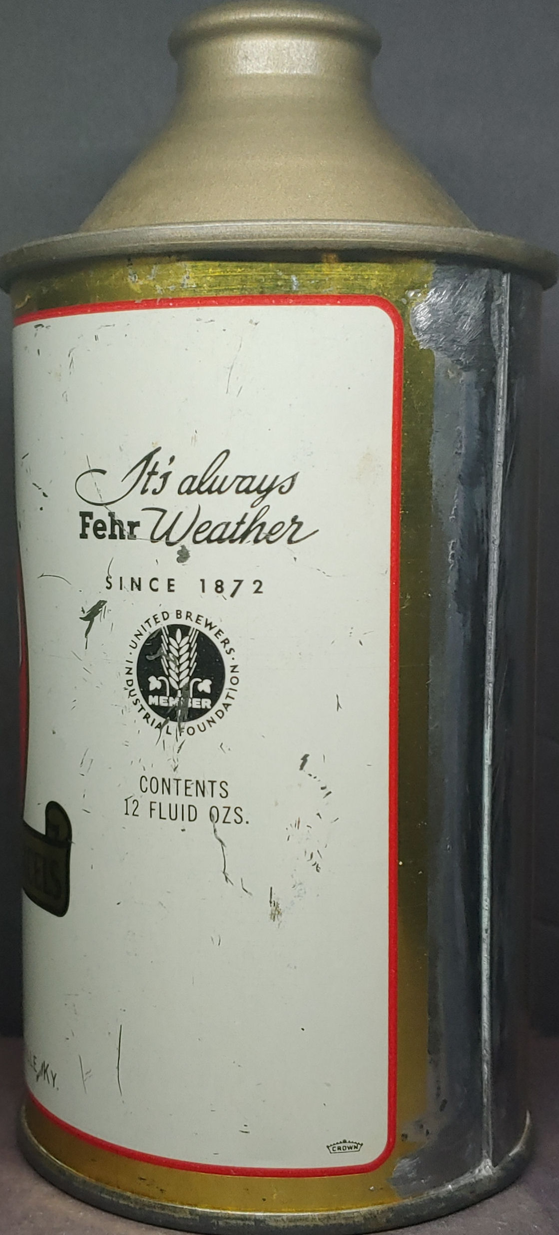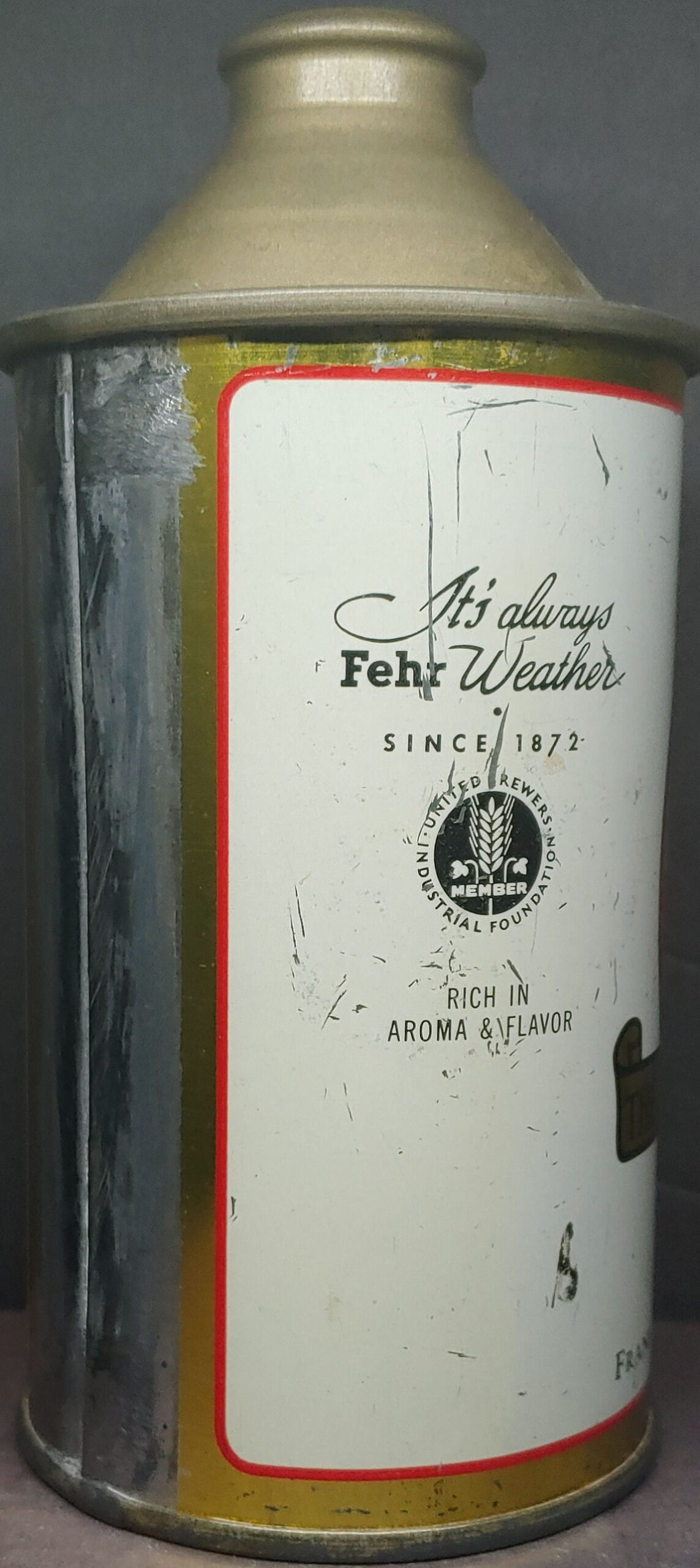 Fehr’s The Beer that Xcels X/L cone top beer can This was a drinking cup Louisville KY