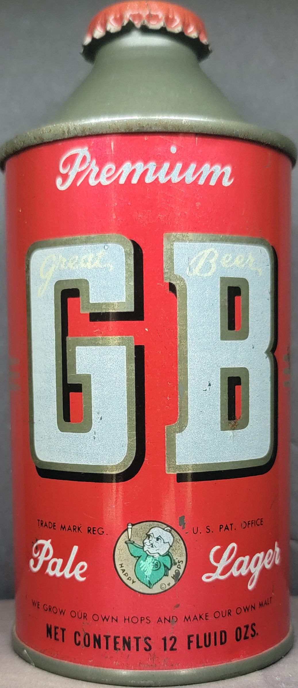 GB Premium Pale Lager high profile cone top beer can IRTP Grace Bros. CA