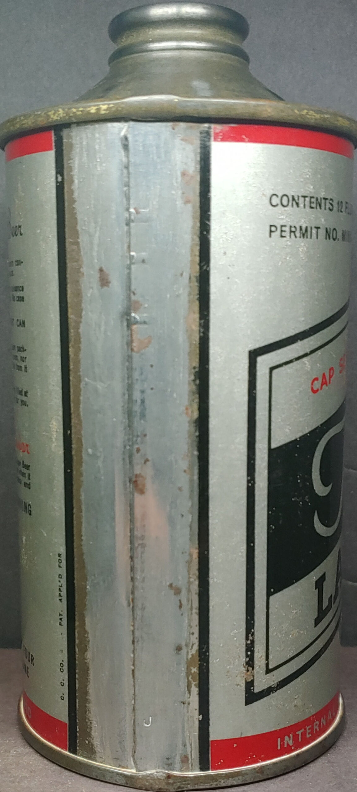 Kato Lager Beer cone top beer can L171-01 with concave bottom not flat bottom as in book 4% version Mankato MN