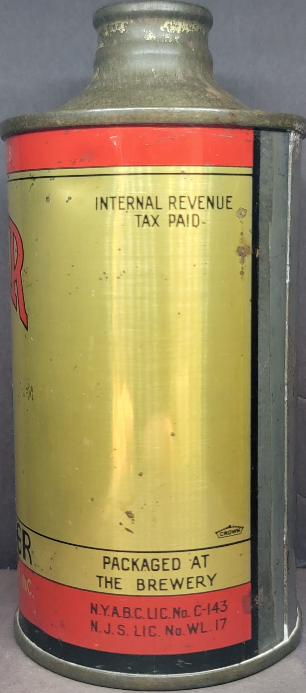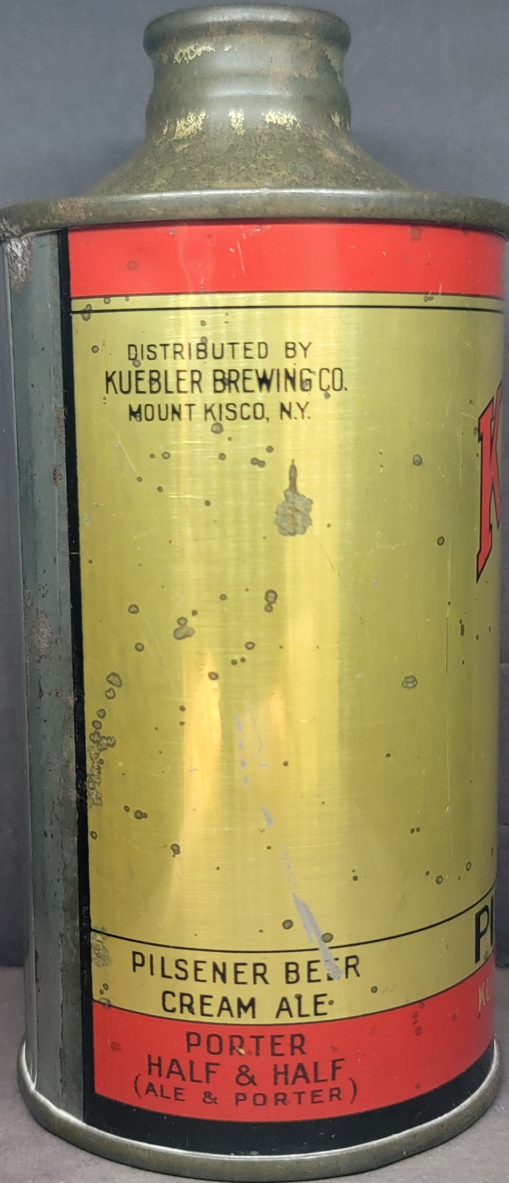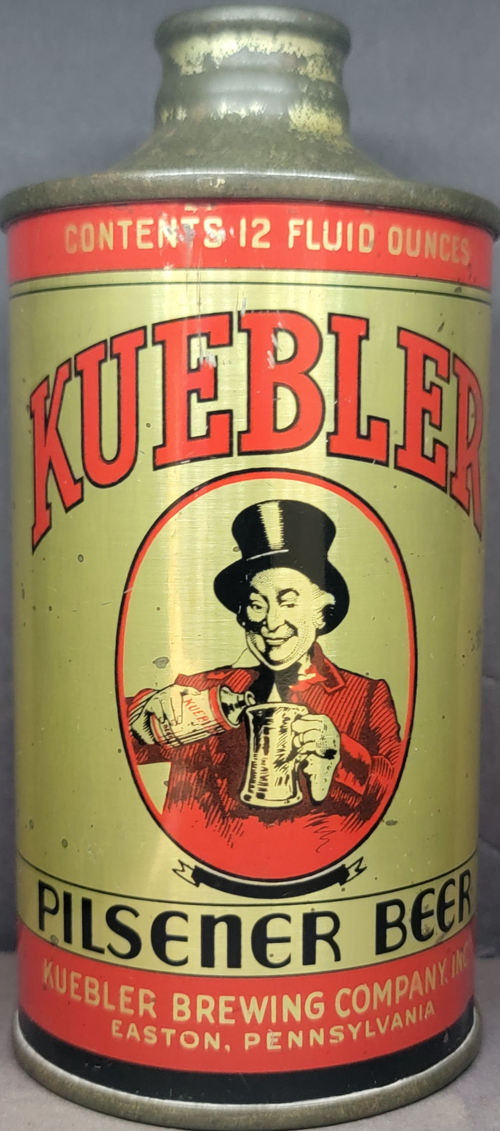 Kueblers Pilsener Beer w/Ribbon IRTP Union stamp Cone Top Beer Can Easton PA