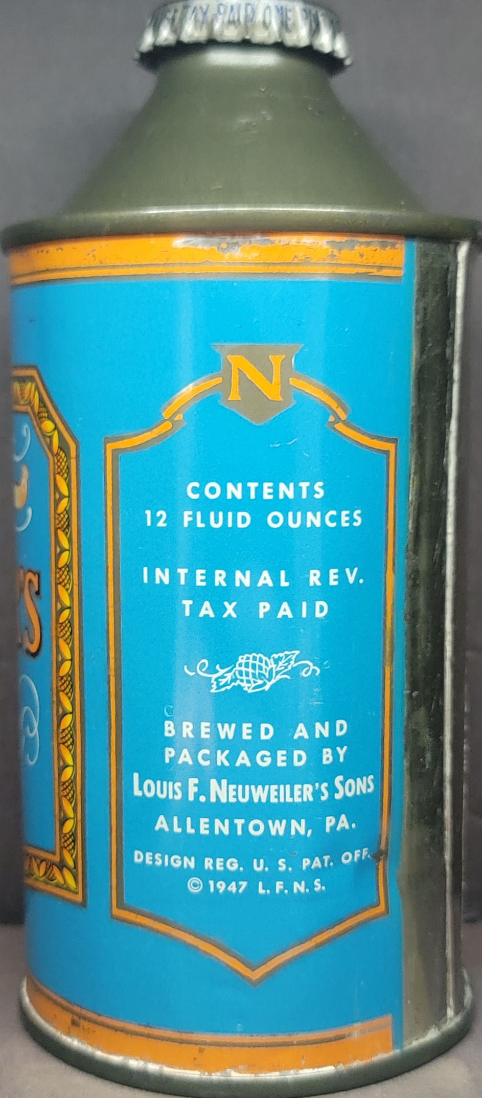 Neuwweiler’s Cream Ale IRTP Cone Top Beer Can Allenton, PA