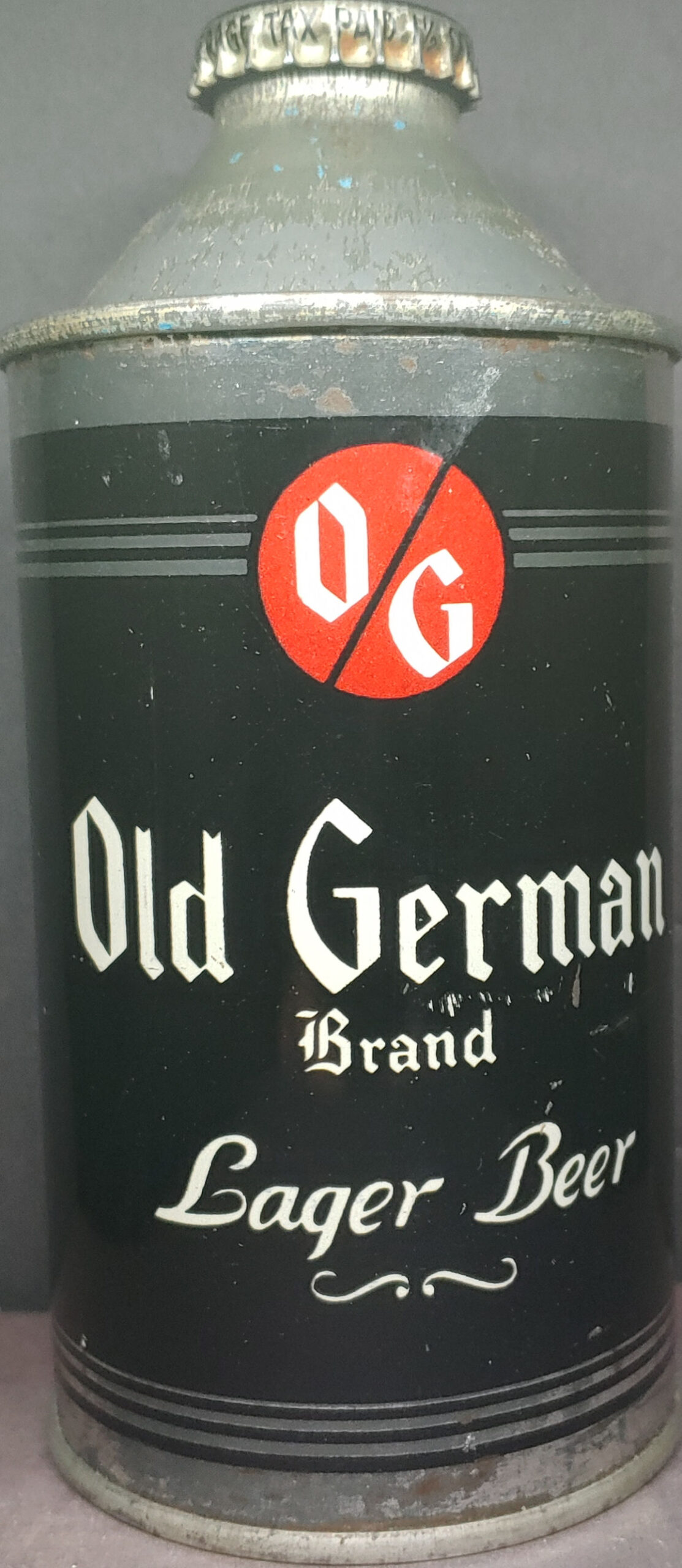 Old German Brand Lager Beer cone top beer can Geo. J. Renner Brewing Co Akron, Oh Tough can!