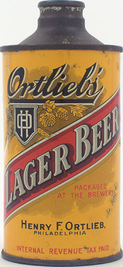 Ortlieb’s Lager Beer J-Spout cone top beer can IRTP Henry F. Ortlieb Philadelphia PA