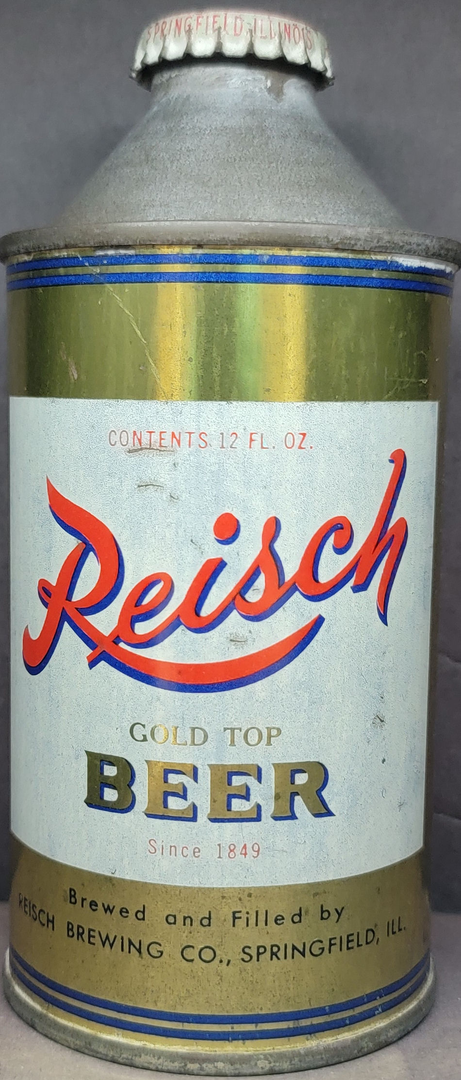 Reisch Gold Top Beer cone top beer can Springfield IL
