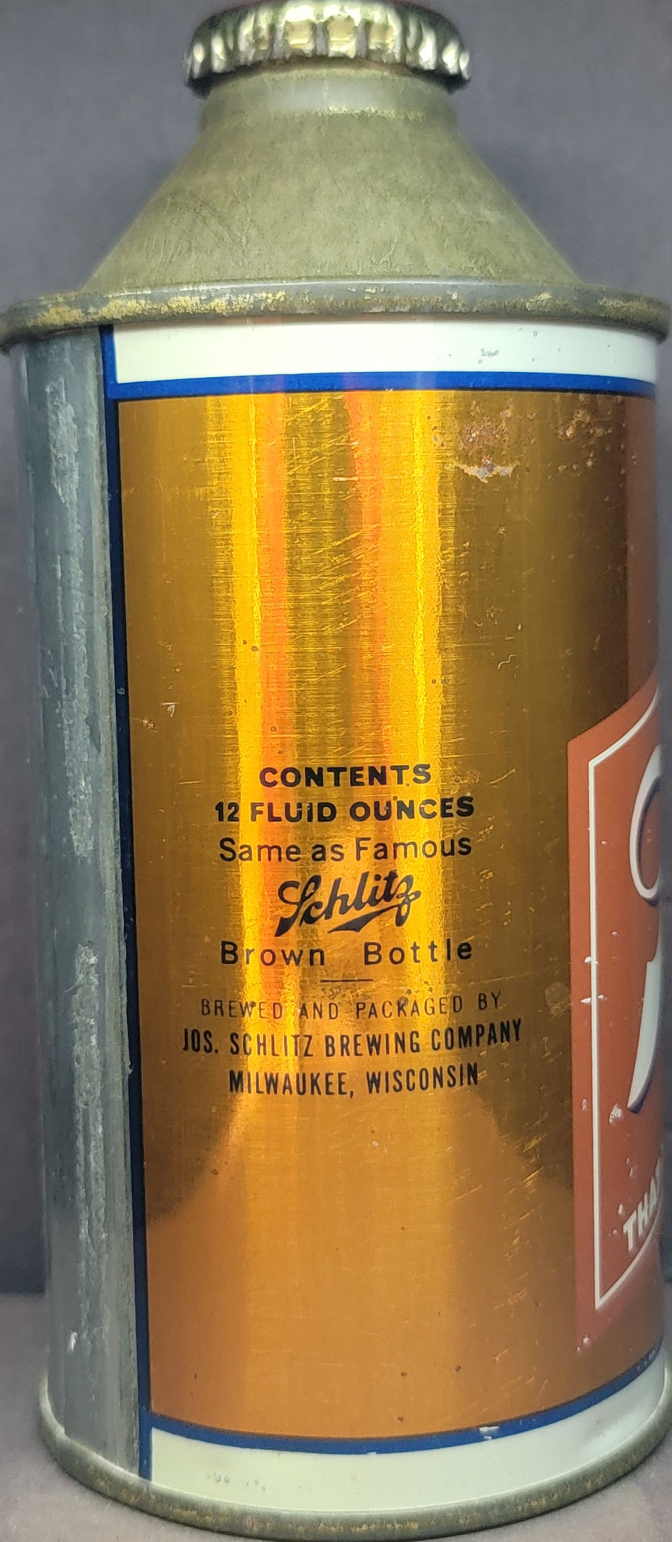 Schlitz Beer IRTP cone top beer can Milwaukee WI