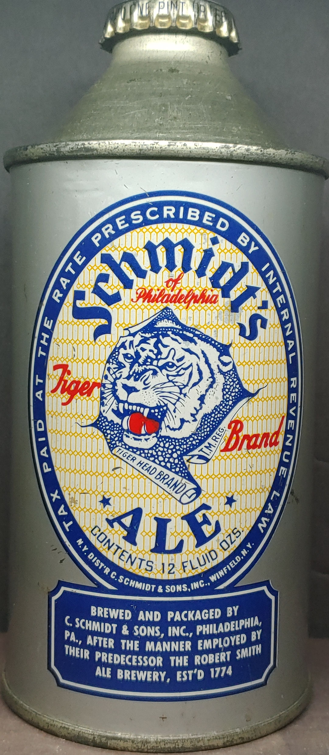 Schmidt’s Tiger Brand Ale IRTP Straight “Philadelphia” cone top beer can Philadelphia PA