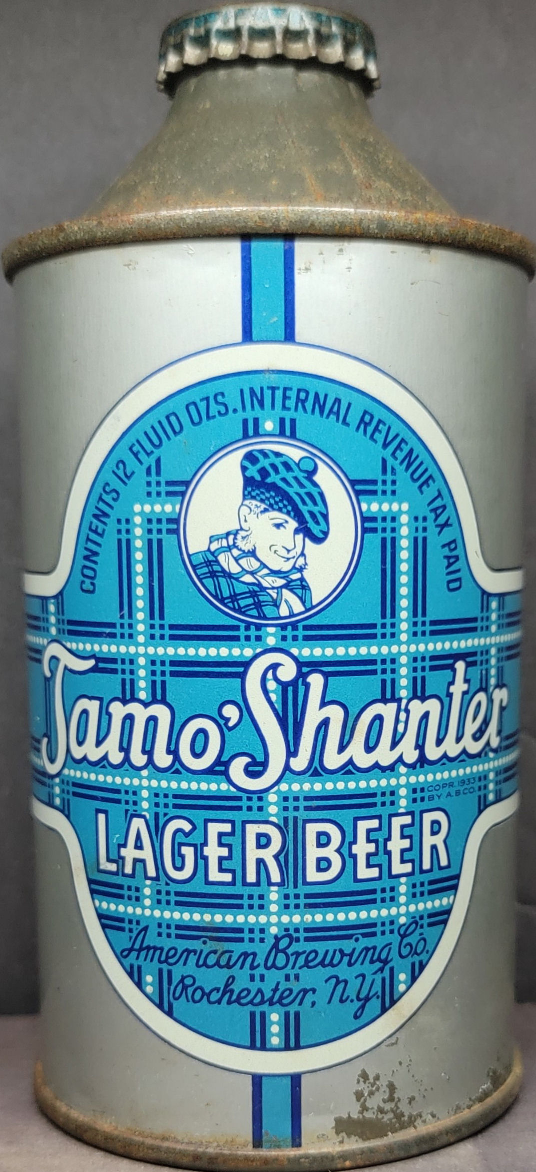 Tamo’Shanter Lager Beer cone top beer can “Flat Bottom” IRTP American Brewing Co, Rochester NY