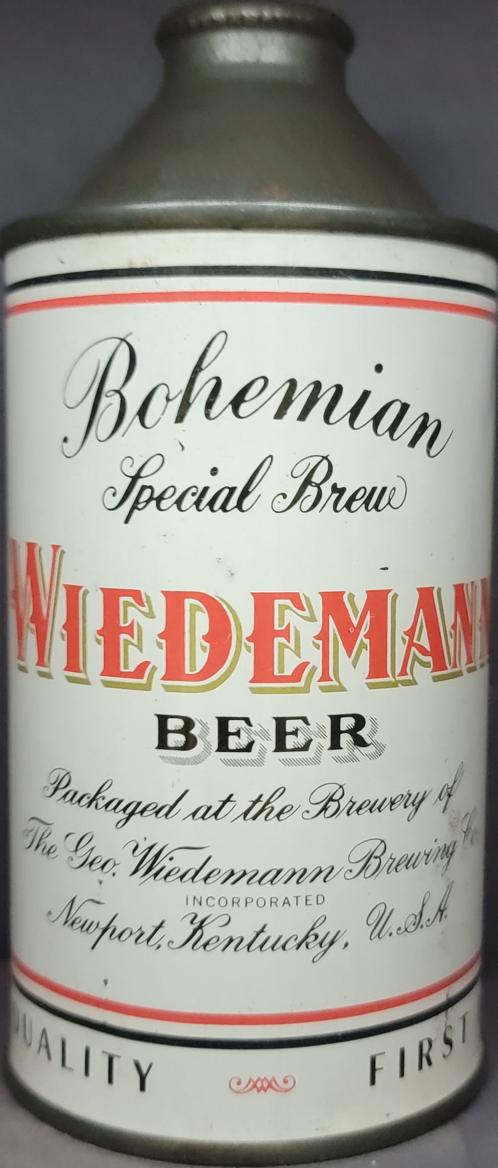 189-07 Wiedemann Bohemian Beer high profile cone top beer can Newport KY