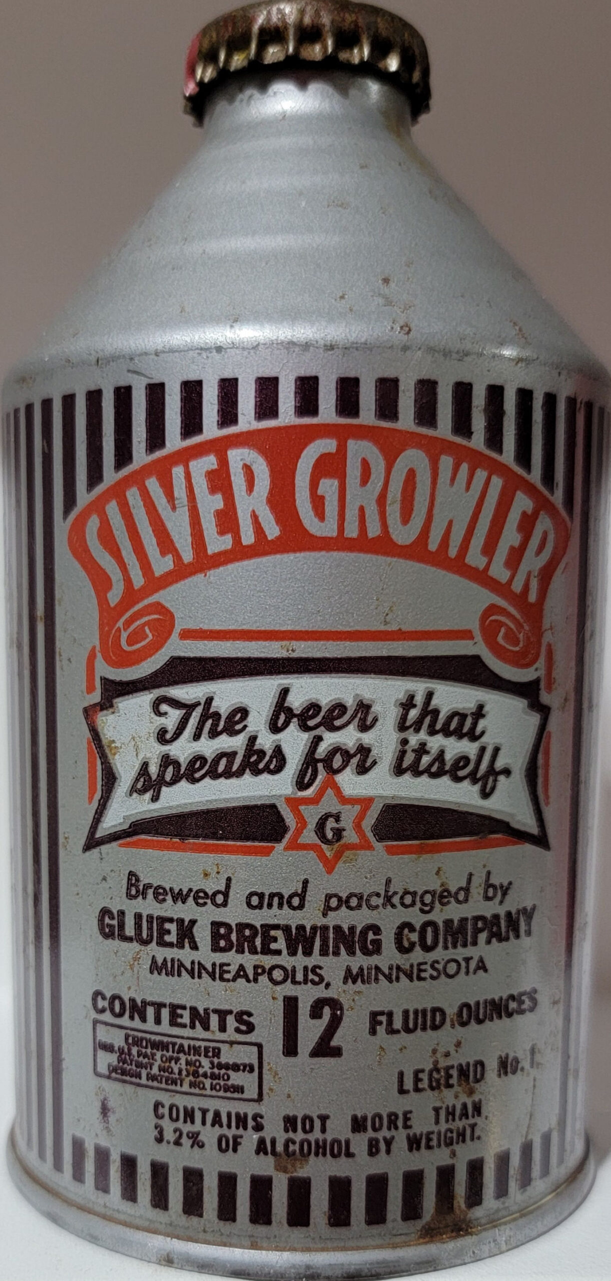 Gluek’s Pilsener Pale Beer crowntainer cone top beer can 3.2% Minneapolis, MN
