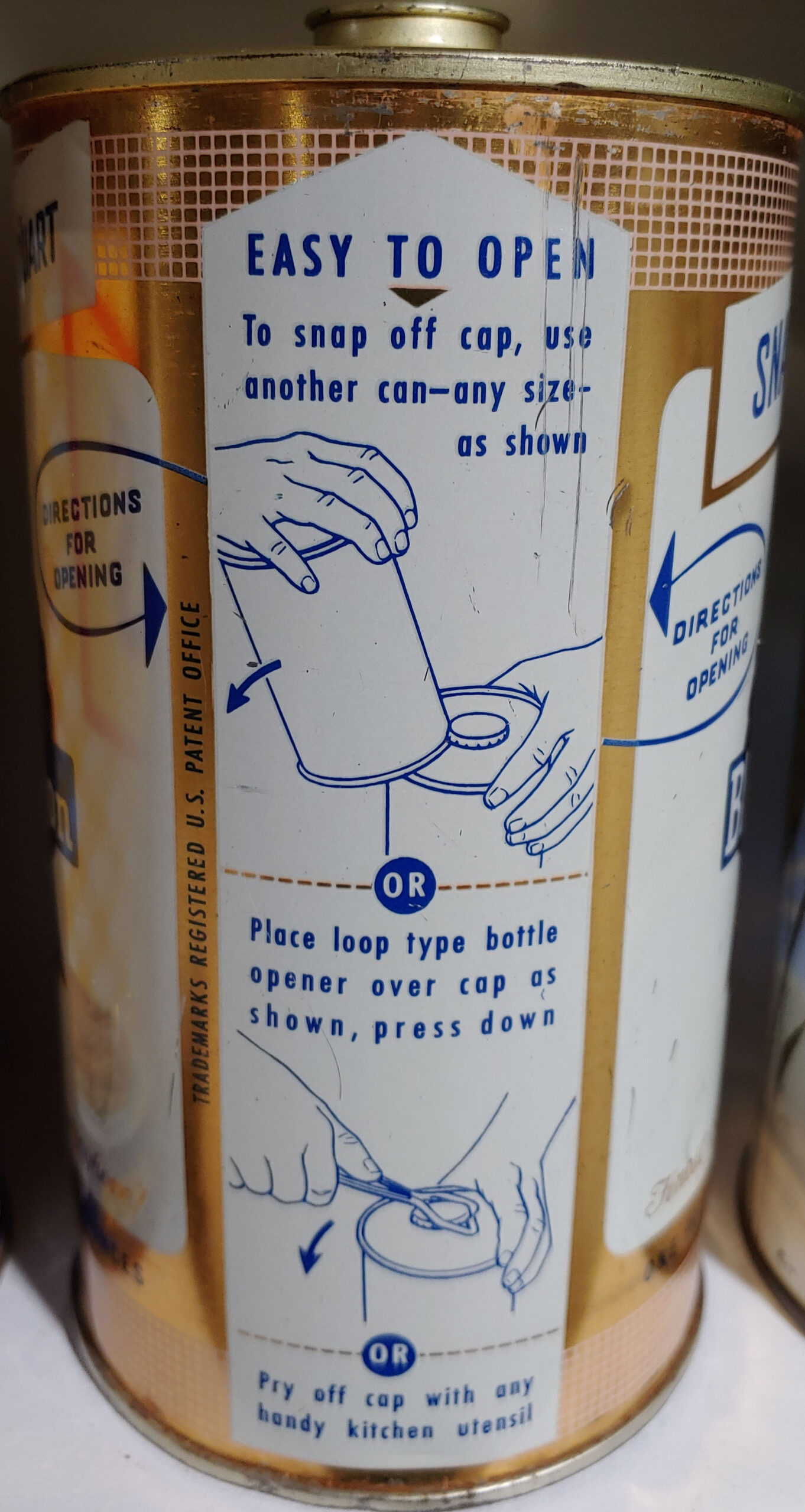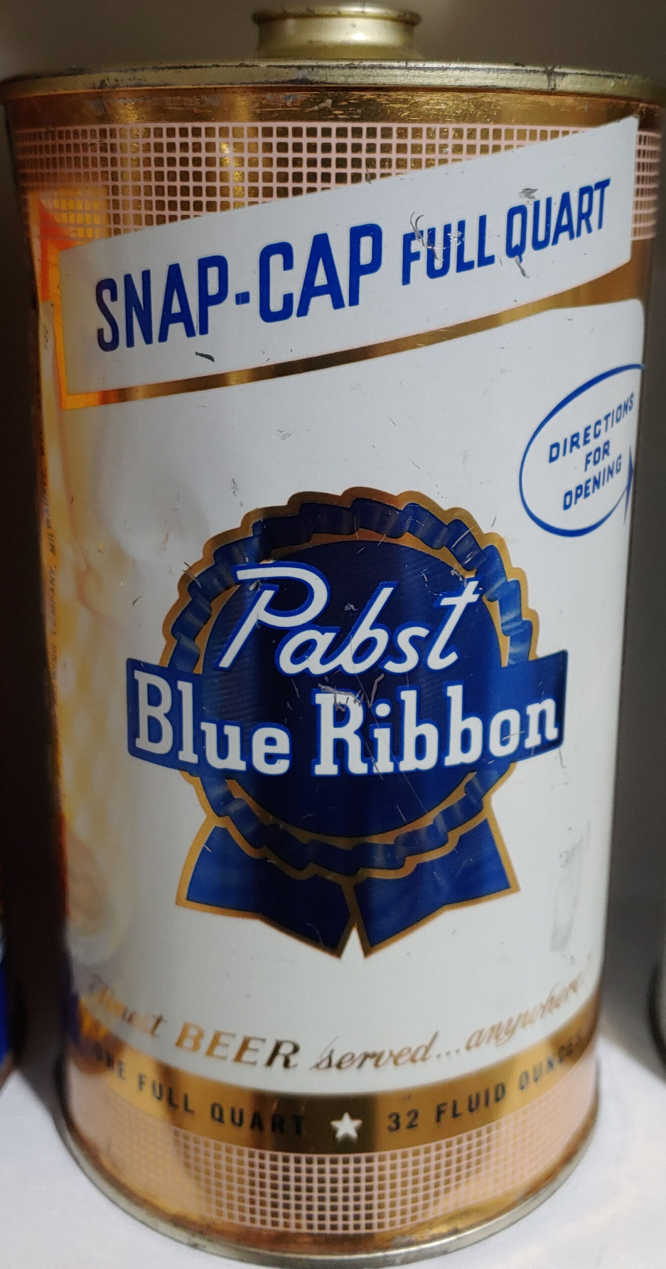 Pabst Blue Ribbon Beer Snap-Cap quart cone top beer can intructional from Milwaukee WI