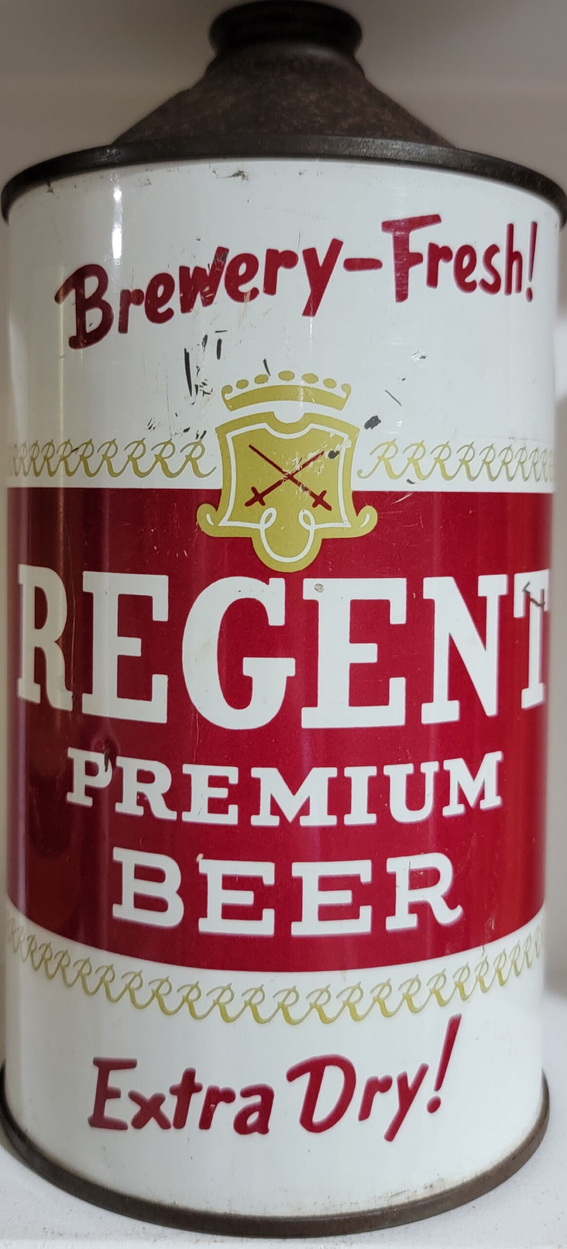 Regent Premium Beer Extra Dry Brewery-Fresh quart cone top beer can Century Brewery Corp. Norfolk, VA