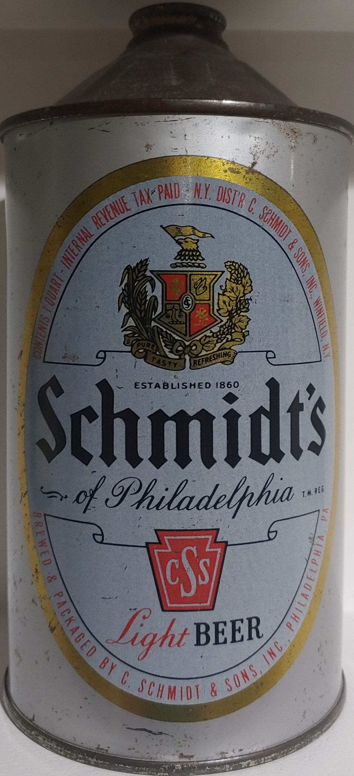 Schmidt’s Light Beer IRTP quart cone top beer can Philadelphia PA