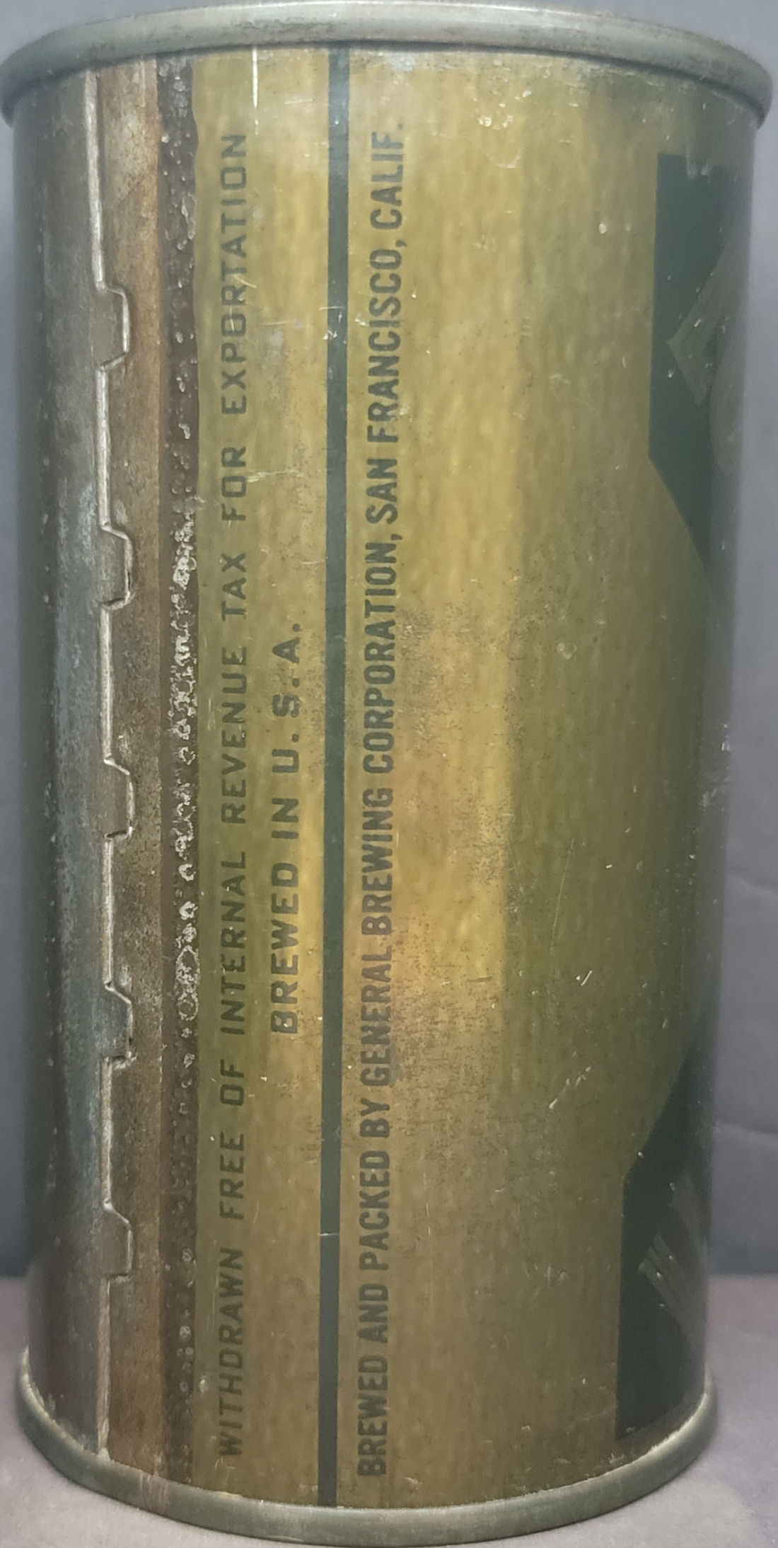 Lucky Age Dated Lager Beer Olive Drab OD flat top beer can WWII San Francisco CA